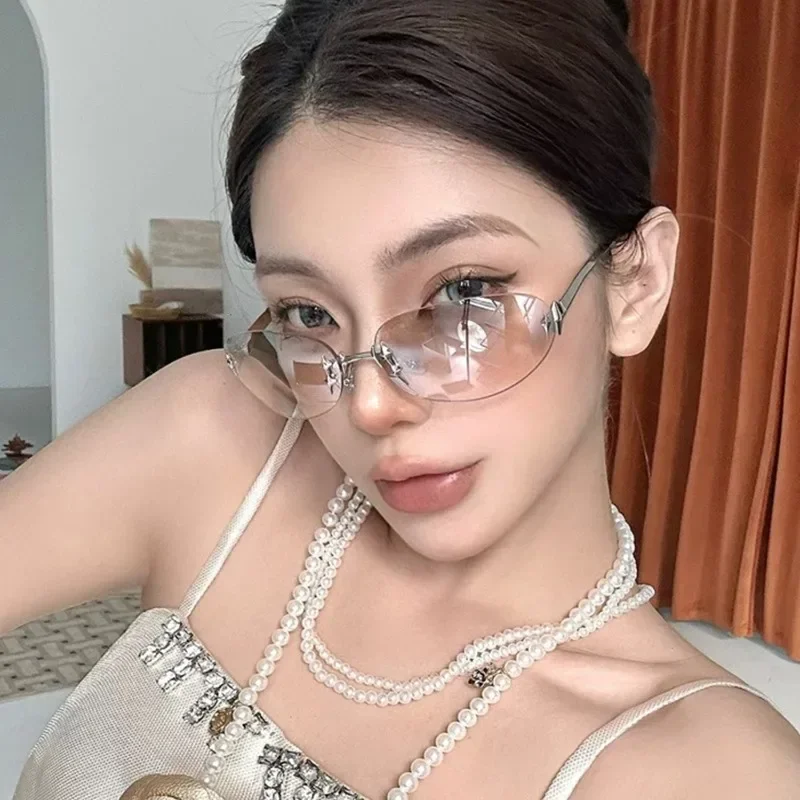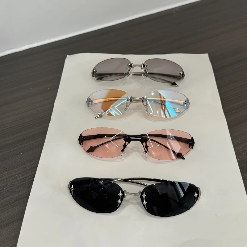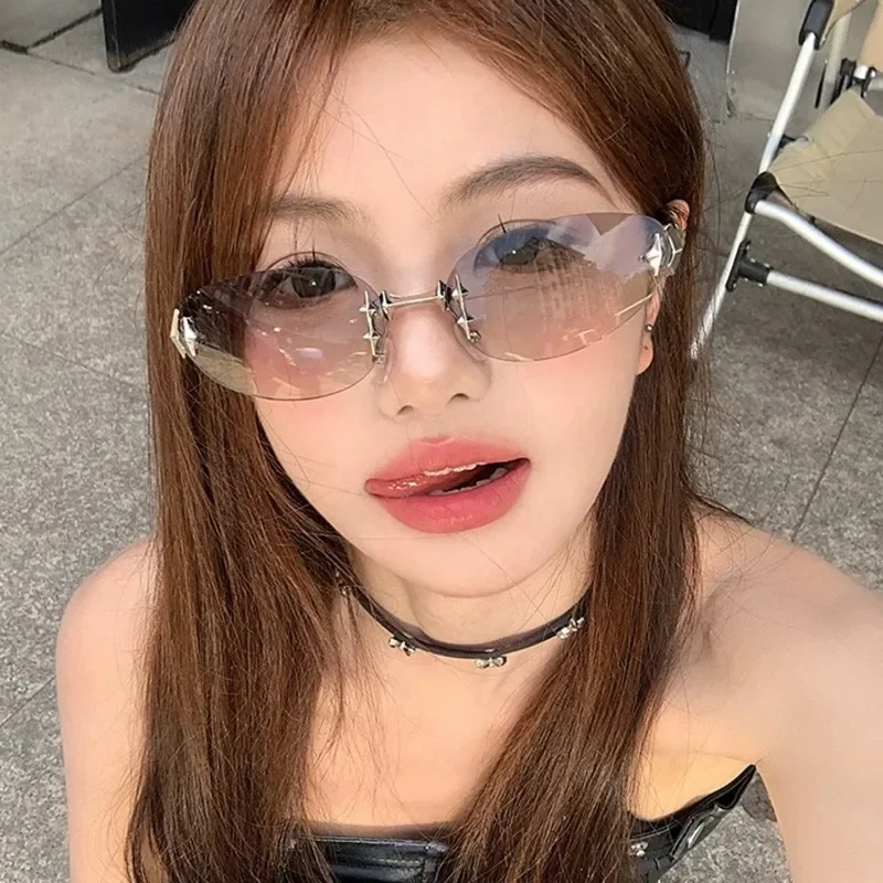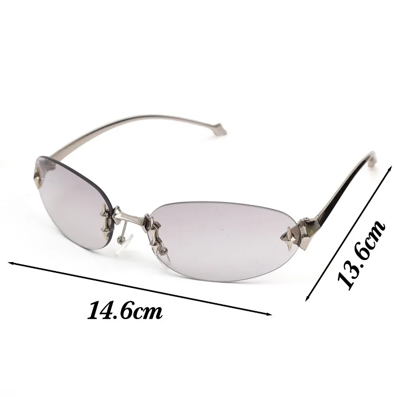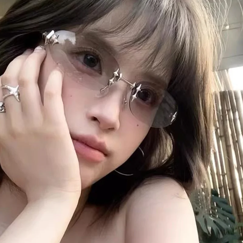 2026 Fashion Rimless Sunglass for Women Men Vintage Star Shaped Small Oval Frameless Y2K Blue Light Blocking Glasses Daily Wear