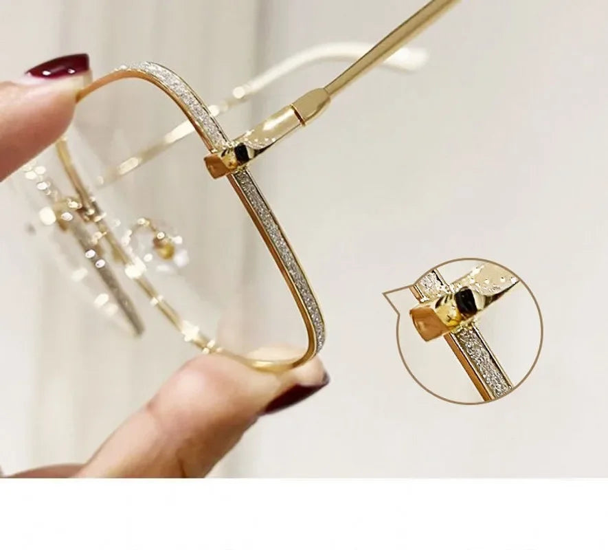 Anti Blue Light Reading Glasses Women Fashion Glitter Anti Blue Light Presbyopic Eyeglasses Frame Oversize Metal Eyewear óculos