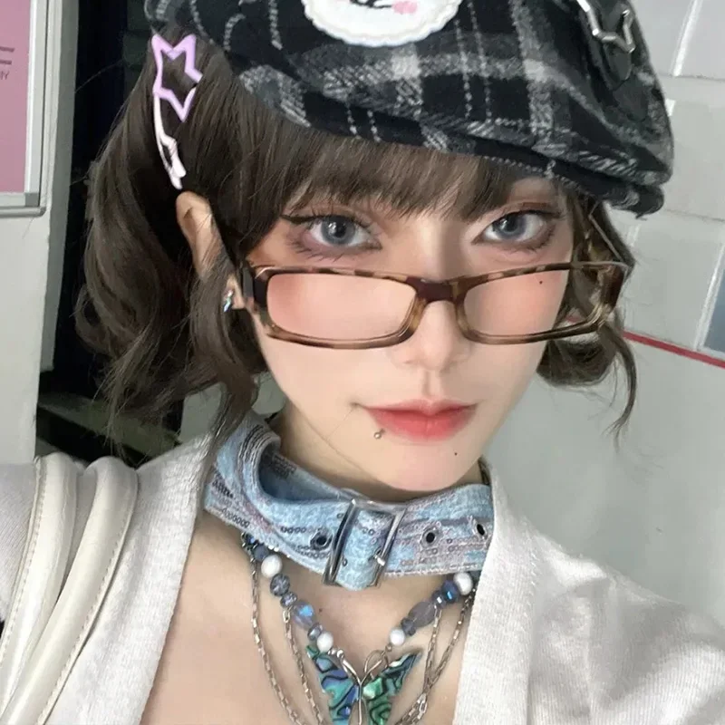 Black Amber VintageY2K Frame Glasses for Women Small Square Eyeglass