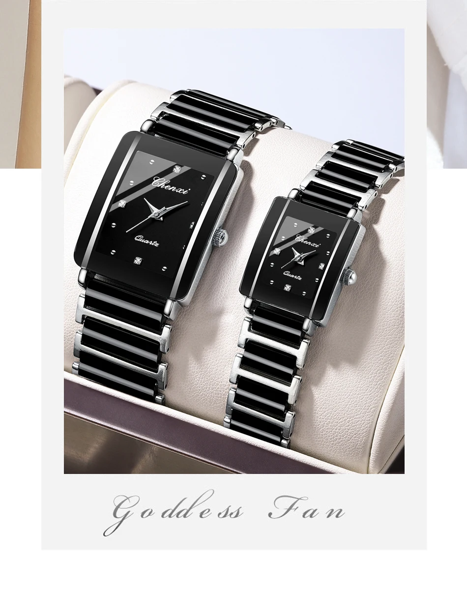 CHENXI 104A Couple Watches Waterproof Luxury Ceramics Square Business Stainless Steel Strap for Women Men Clock