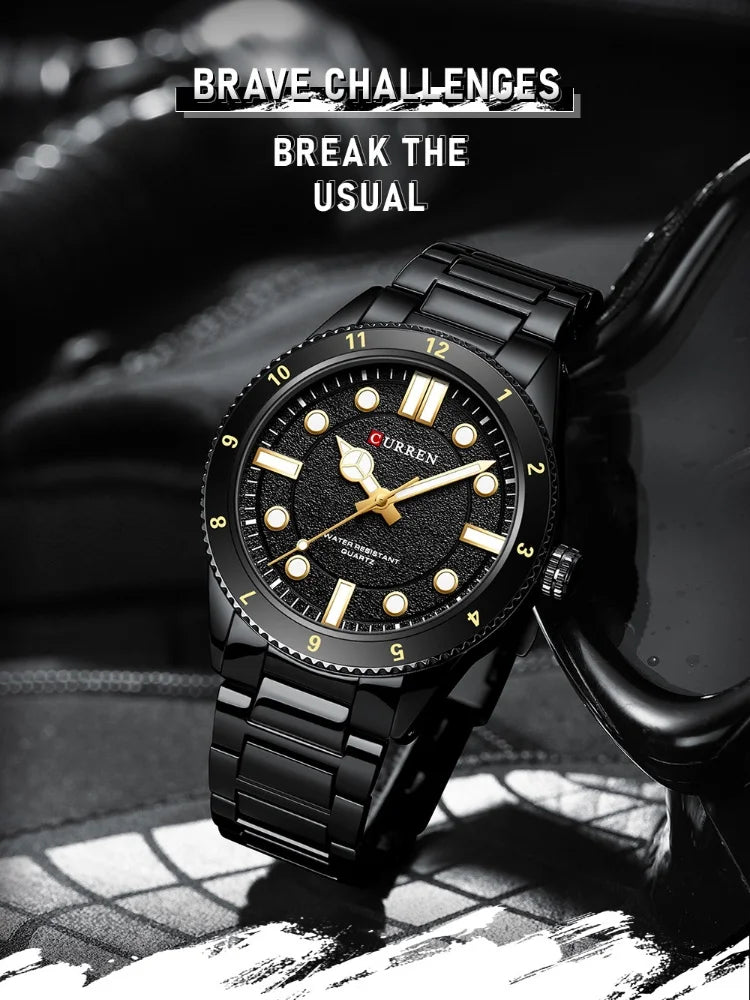CURREN 8450 Stainless Steel Strap Men's Quartz Watch Business Blue Green Clock Analog Display Wrist Watches for Male