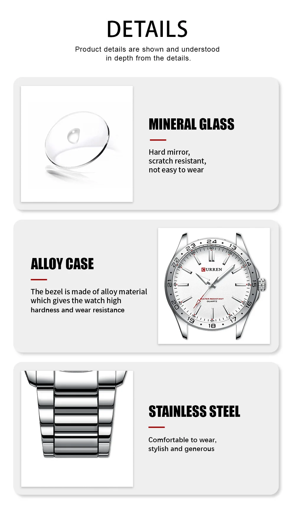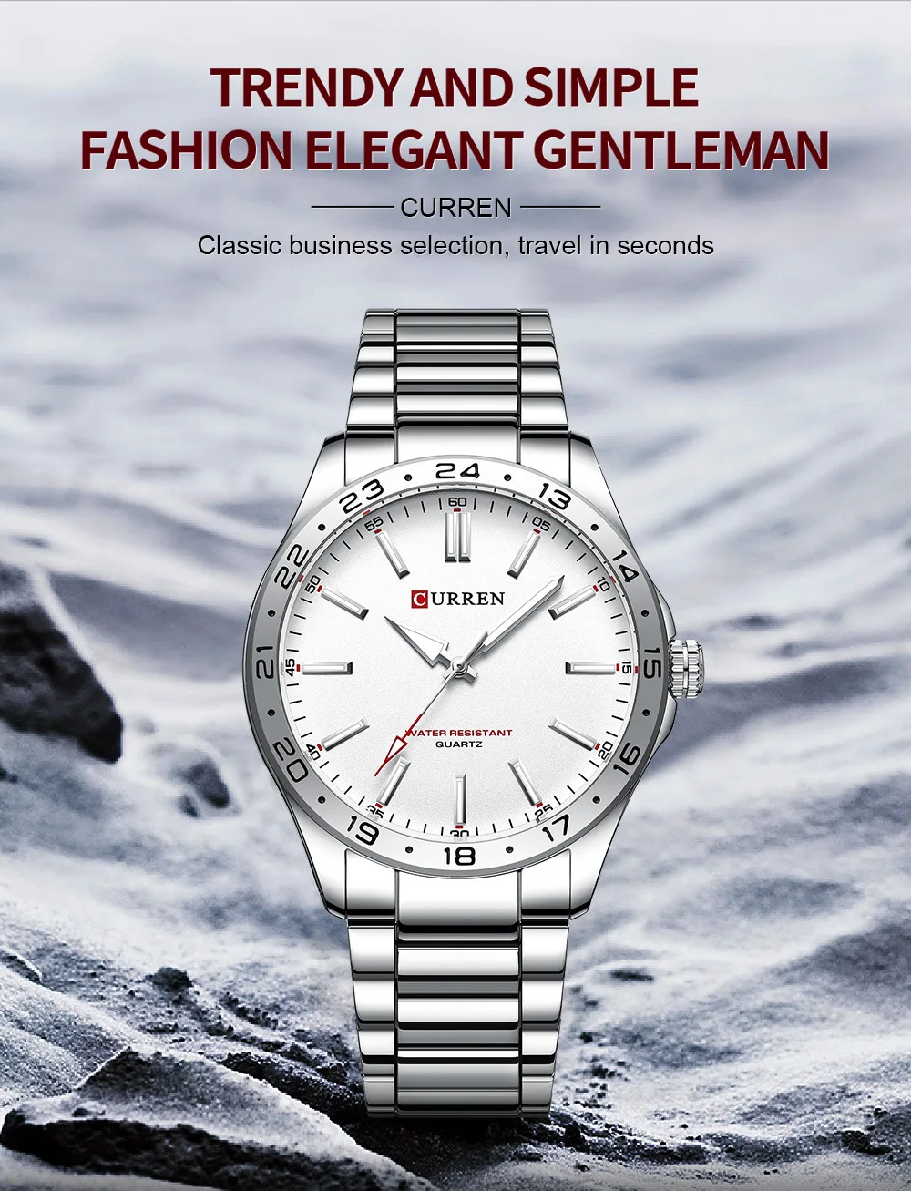 CURREN 8452 Casual Sport Simple Business Men's Watches 2025 Stainless Steel Band Wristwatch Quartz Clock with Luminous Pointers