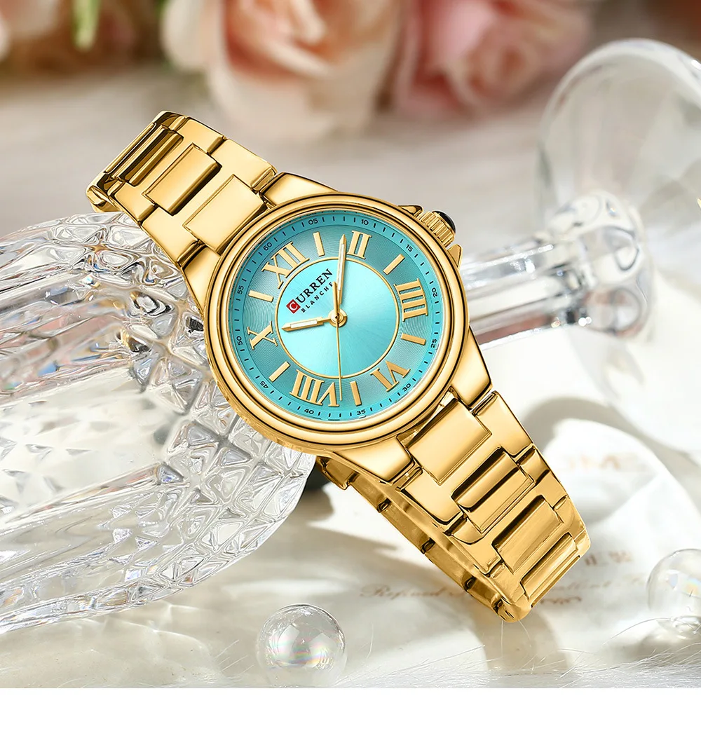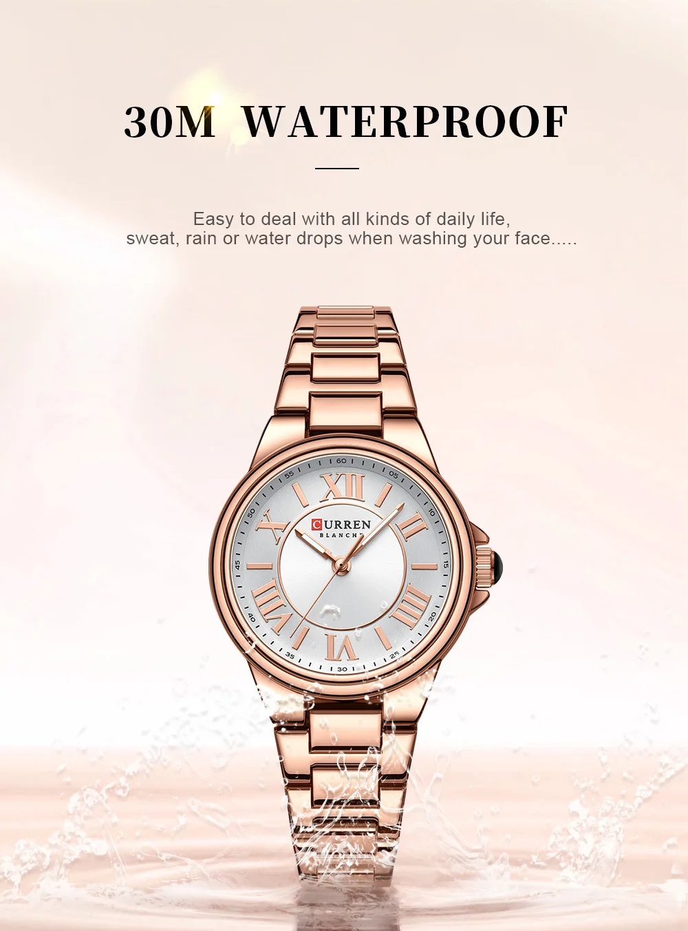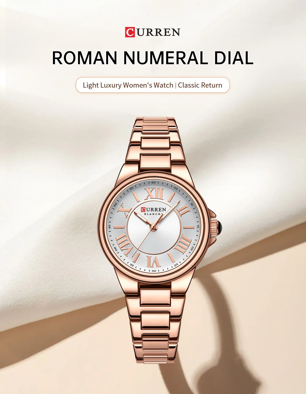 CURREN 9091 Luxury Original Woman Round Watch Stainless Steel 3ATM Waterproof Wristwatch