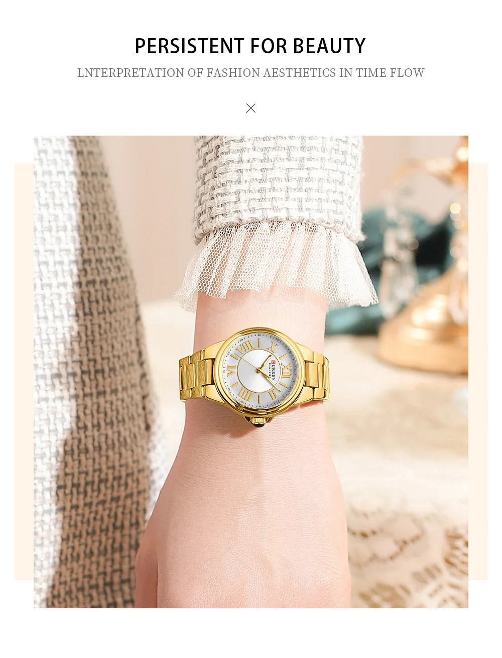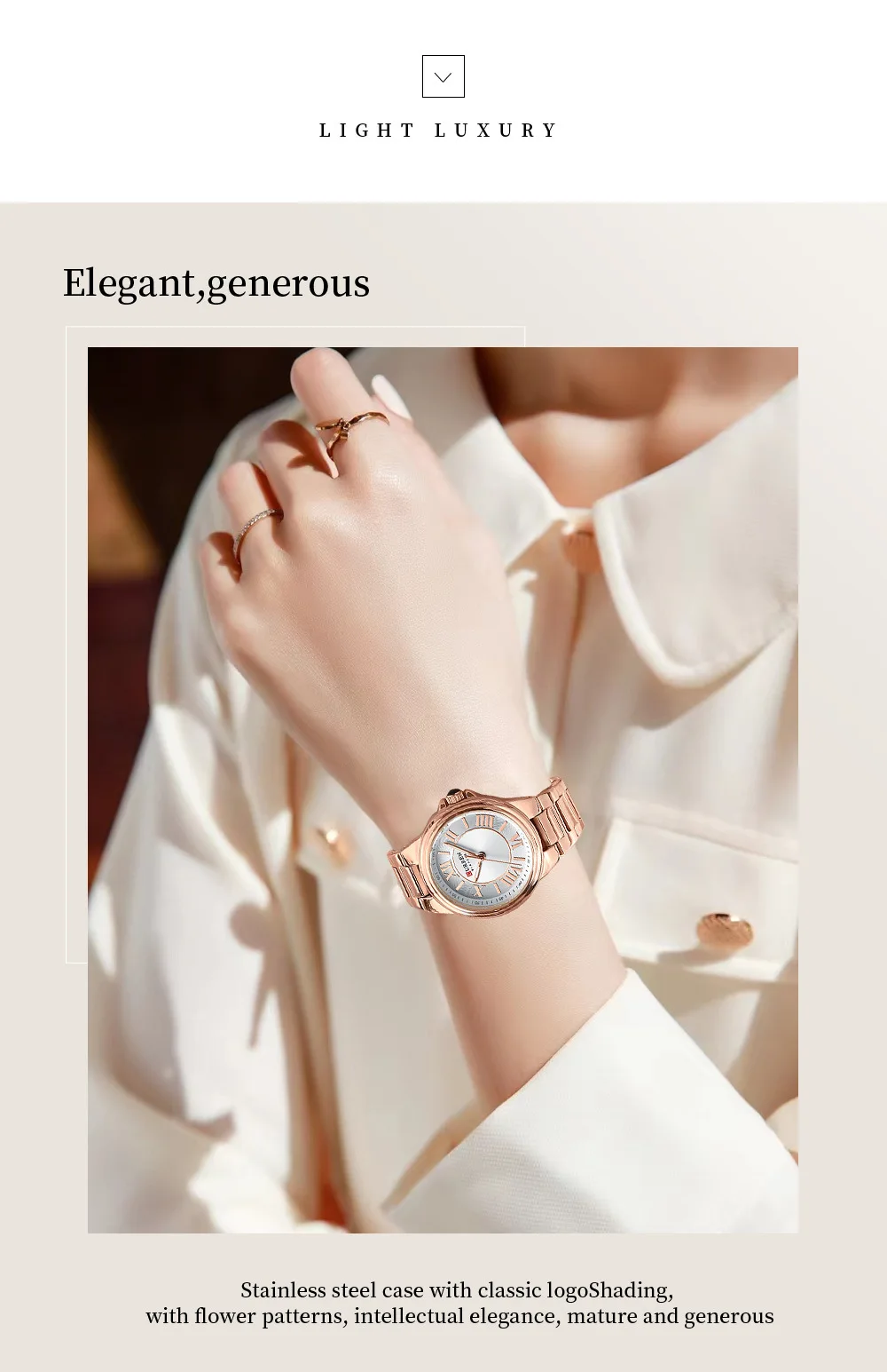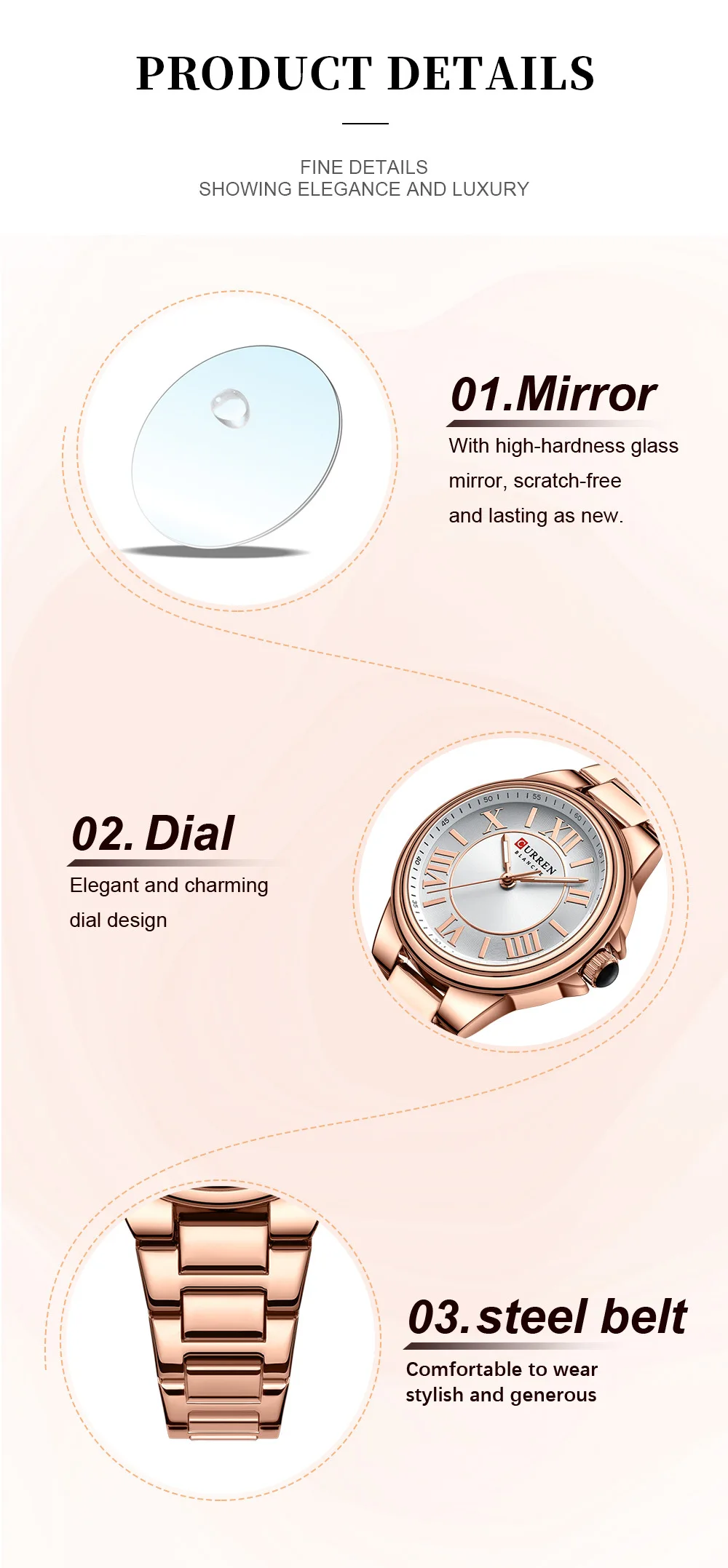 CURREN 9091 Luxury Original Woman Round Watch Stainless Steel 3ATM Waterproof Wristwatch