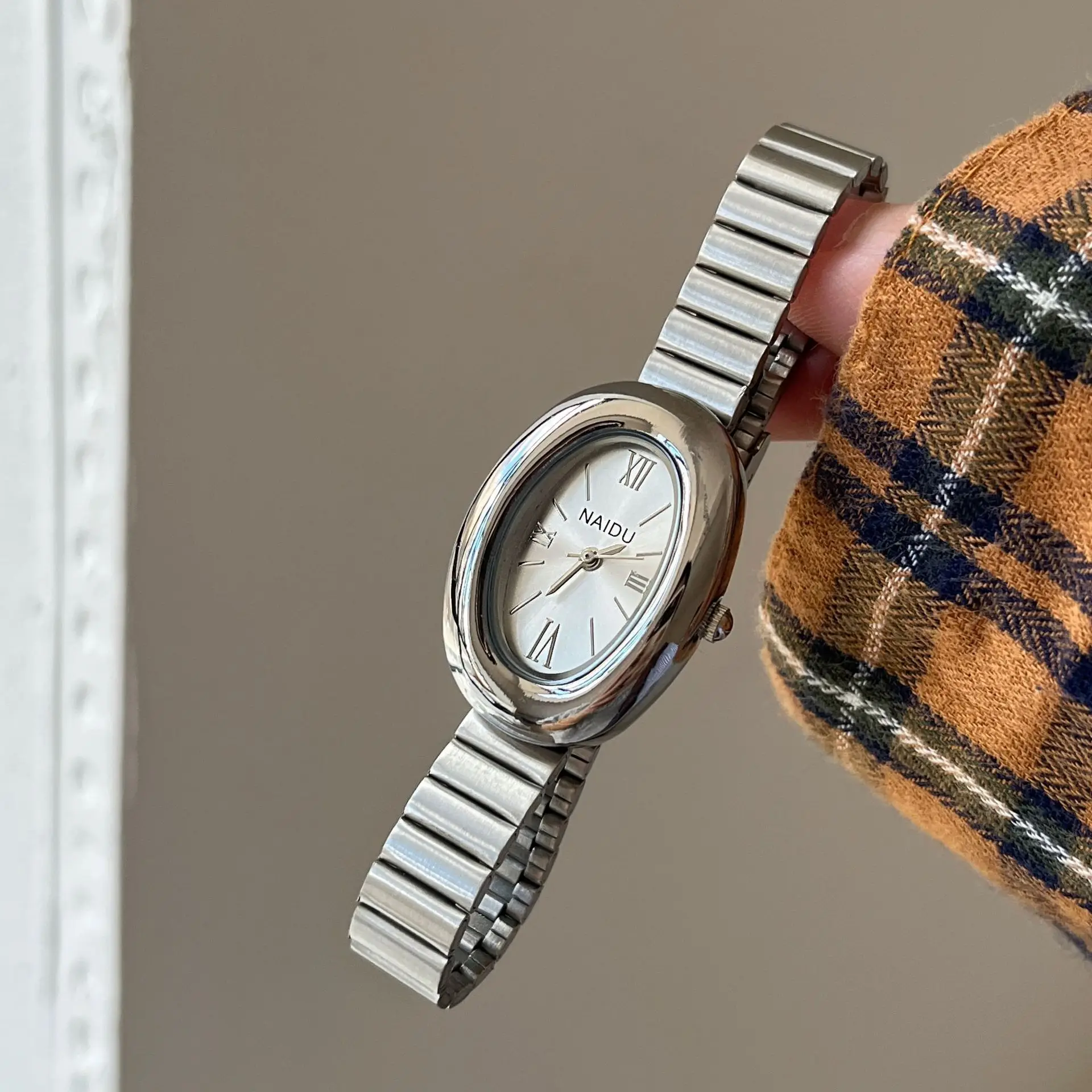 Hot Sale Women Watch Vintage Oval Dial Gold Watch Luxury Roman Numerals Steel Strap Ladies Girl Gift Wristwatch Clock Relojes