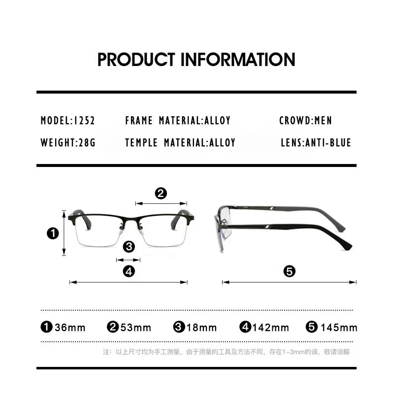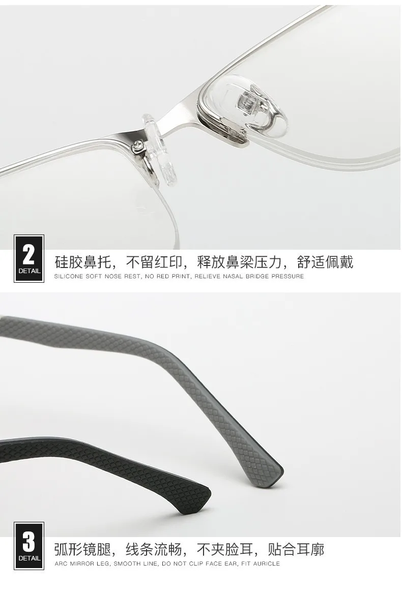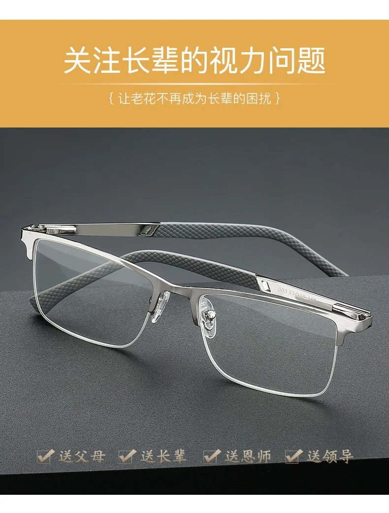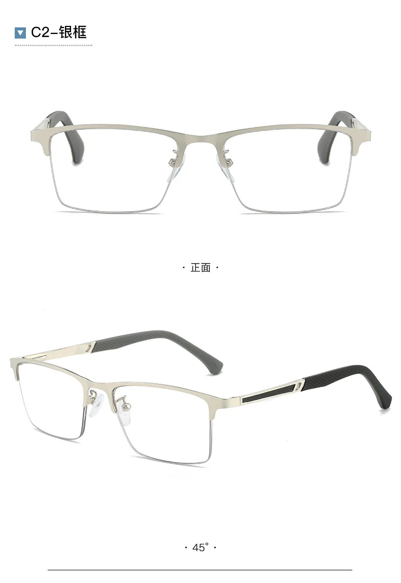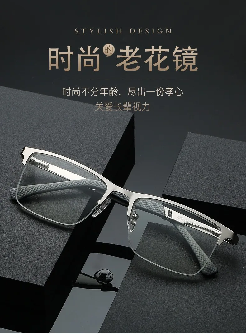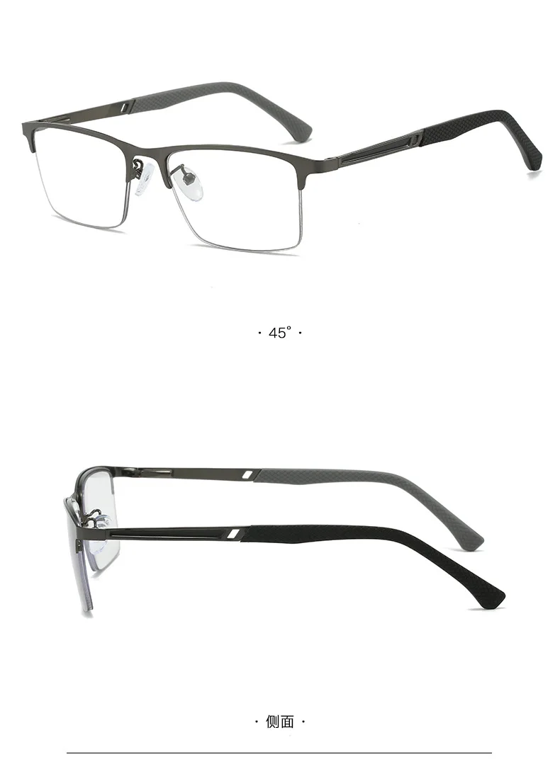 O-Q CLUB Men's Half-frame Business Reading Glasses Anti-blue Light Anti-fatigue Metal Frame