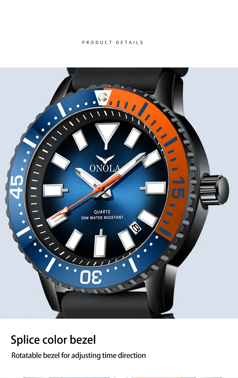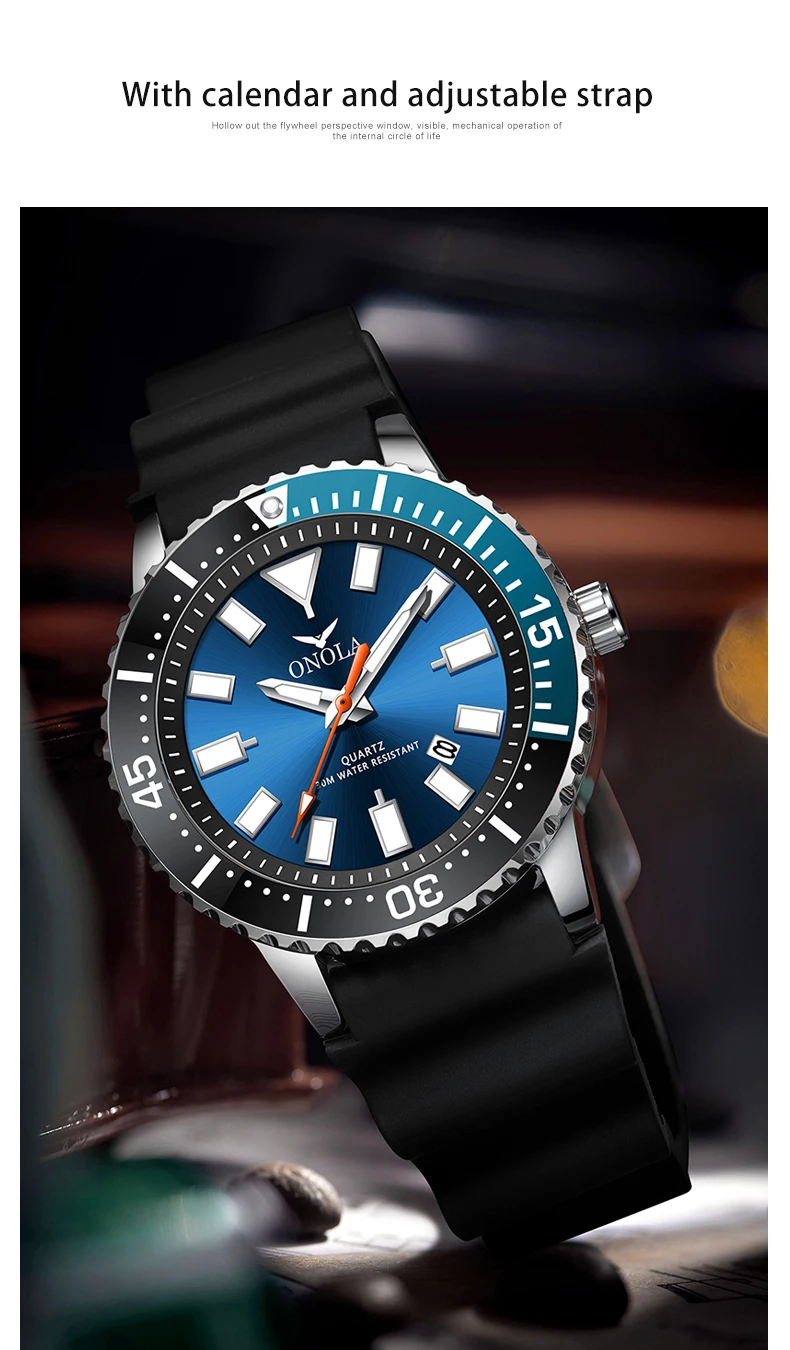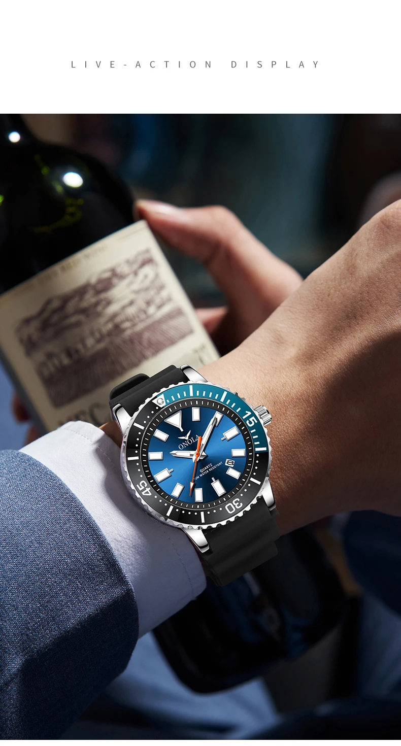 ONOLA 3850 Luxury Men's Watch Silicone Strap Timing Waterproof Sports Quartz watch