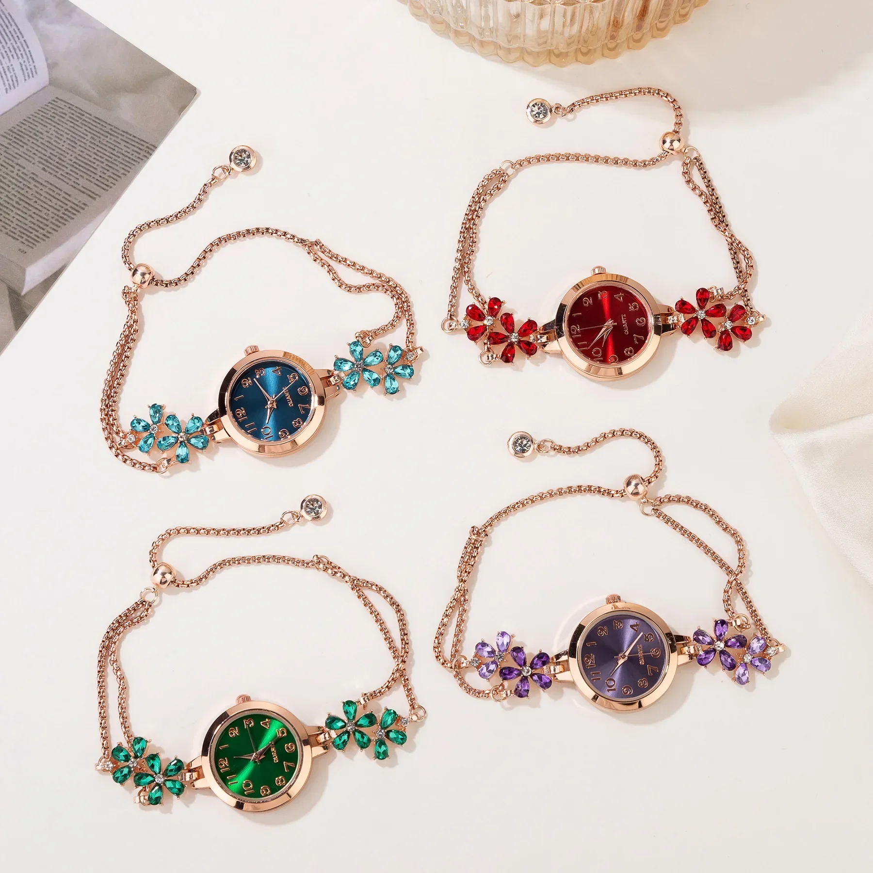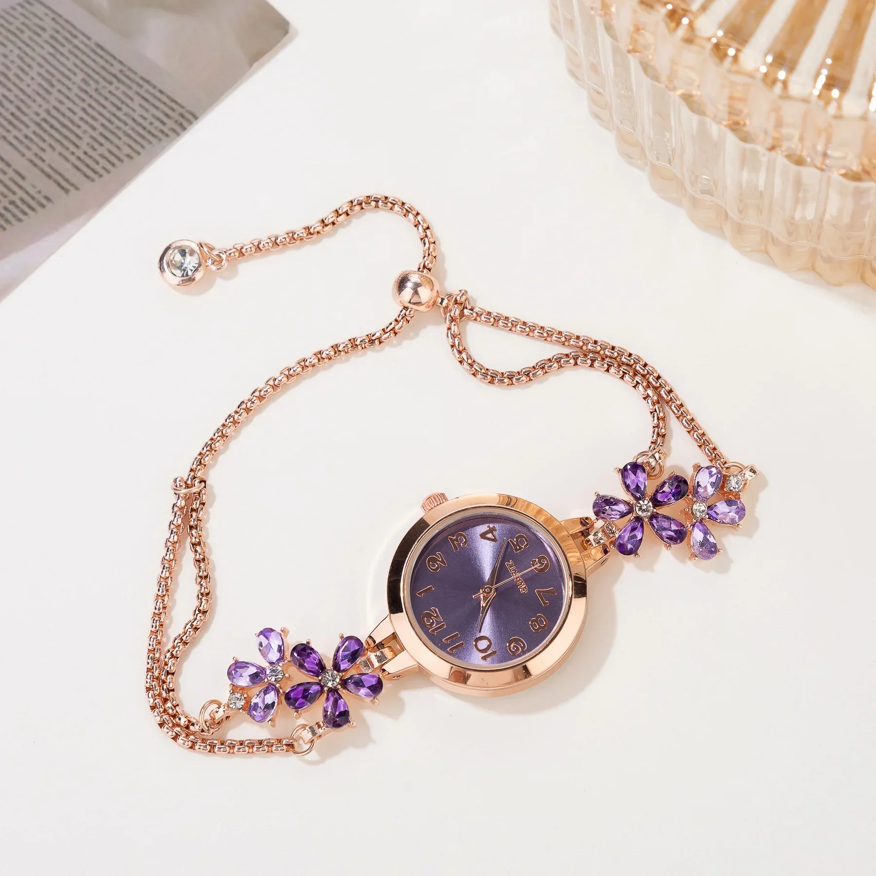 Reloj Mujer Women Watch Fashion Light Luxury Bracelet Quartz Watches for Women Exquisite Violet Crystal Ladies Watches Gifts