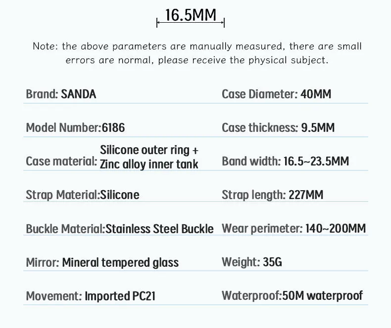 SANDA 6186 Fashion Teenagers Silicone Strap Quartz Watch