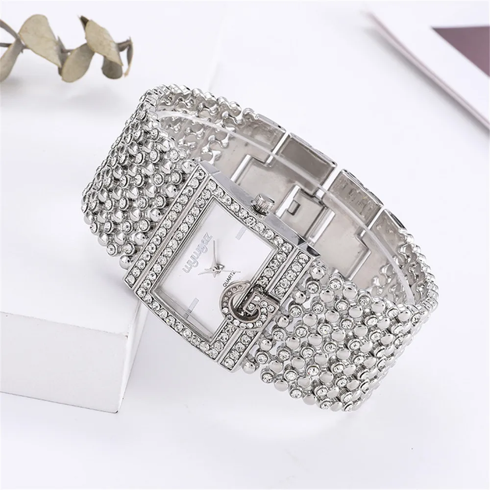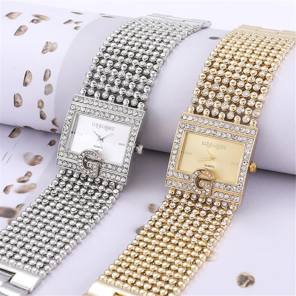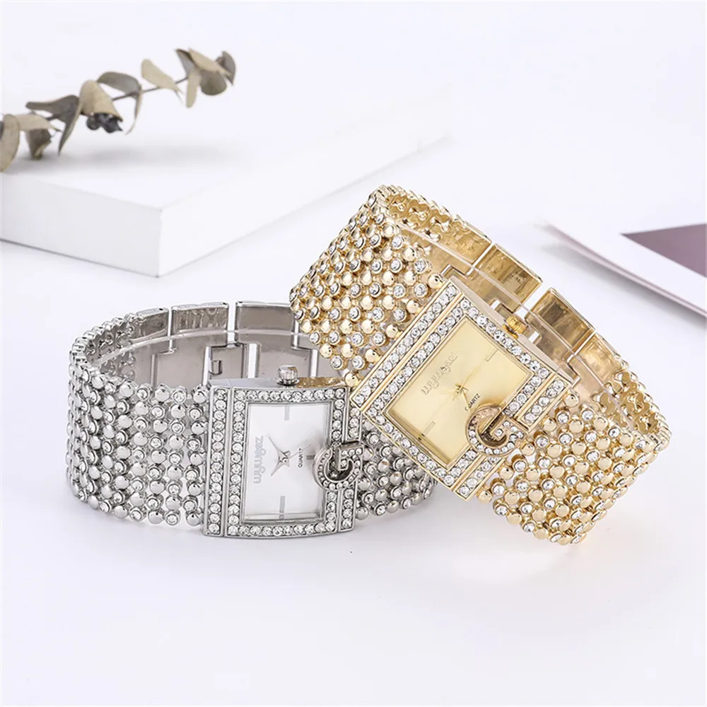 Simple Square Gold Ladies Watch Fashion Classic Alloy Diamond Bracelet Ladies Watch Gold Silver Diamond Scale Dial Quartz Reloje