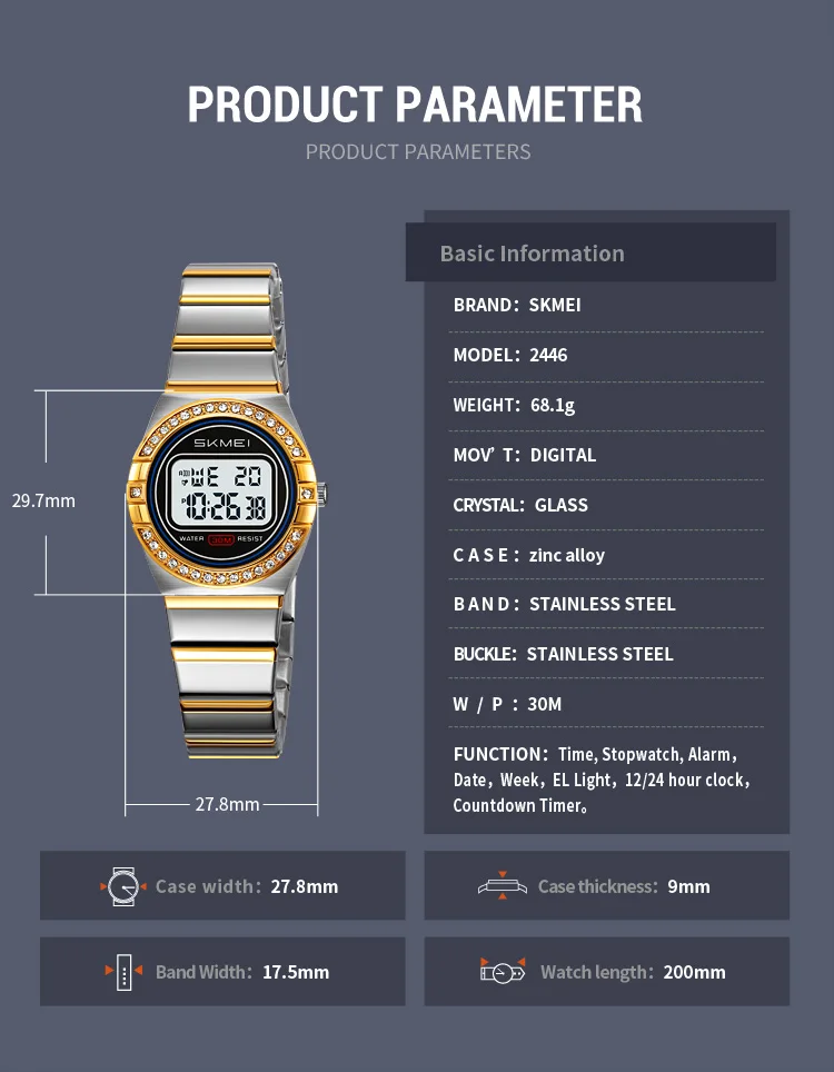 SKMEI 2446 Luxury Casual Female Girl Sports Watches Waterproof Digital Wristwatches