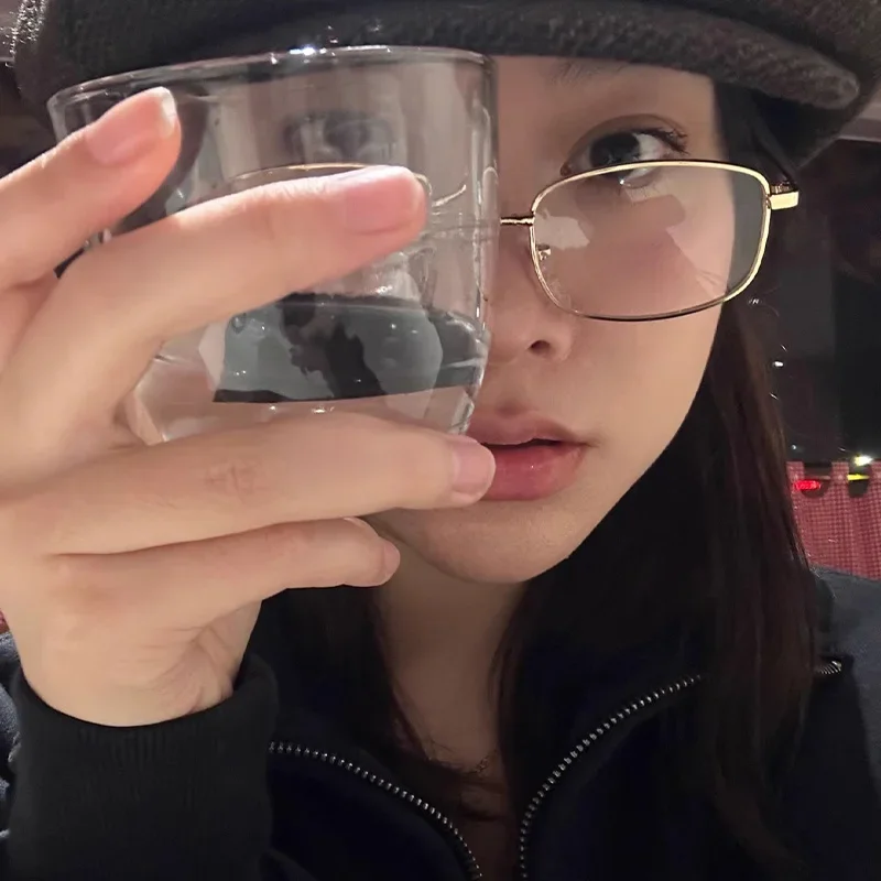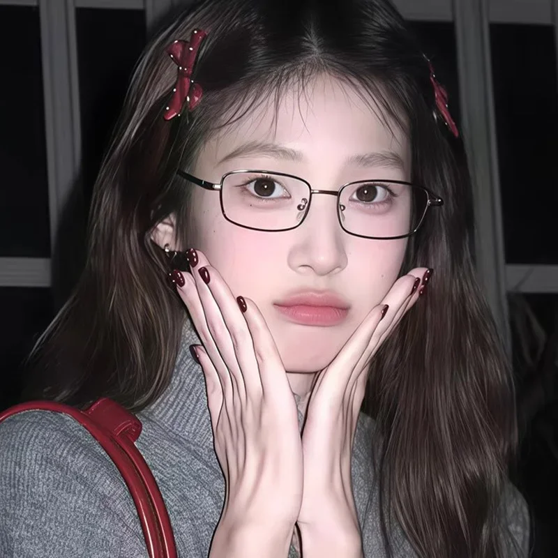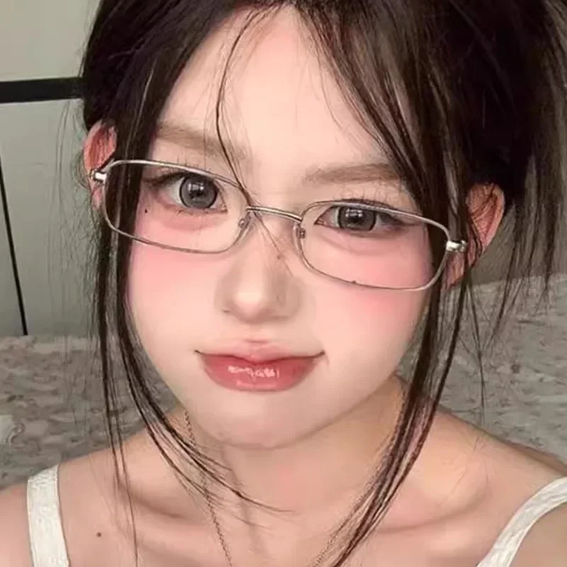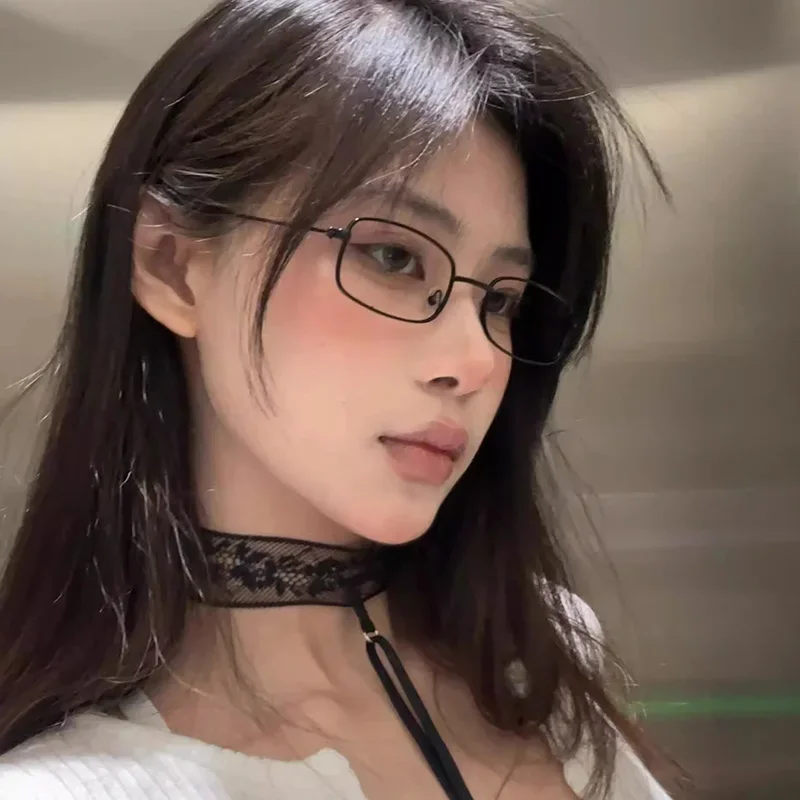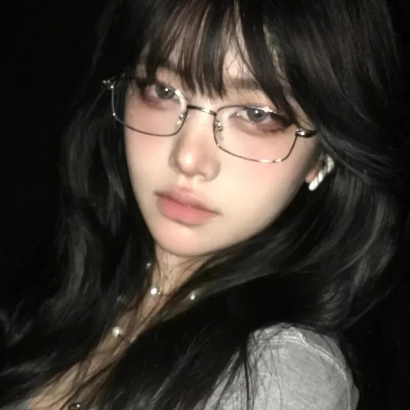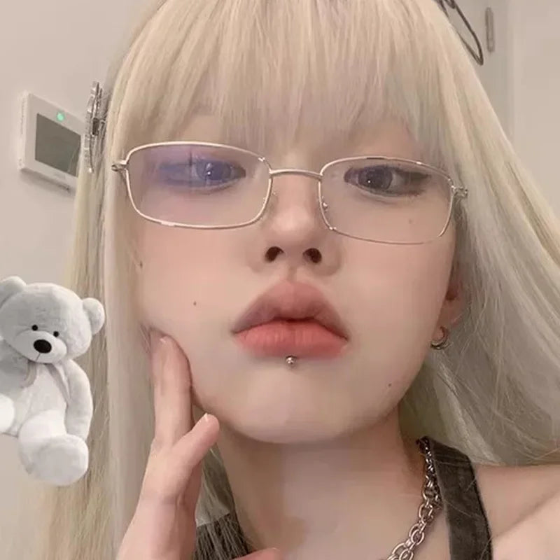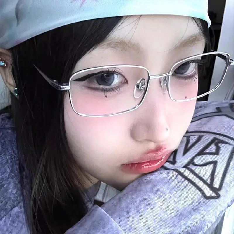 Y2K Vintage Black Silver Metal Eyeglasses Fashion Clear Reading Glasses
